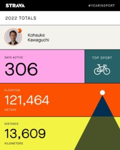ソロでは、夏には、San FranciscoからLos Angelesまで一週間掛けて940kmを走破するイベントに参加した。四日目にCOVID陽性が発覚して、残念ながらその場でリタイアとなった。大変悔しかったので、その場で来年の申込みをした。来年こそは、必ず走破する。ロードレースにも一度参加した。あっという間に後方に脱落したが面白い経験になった。もう一度参加してもうちょっと喰らいついてみたい。
