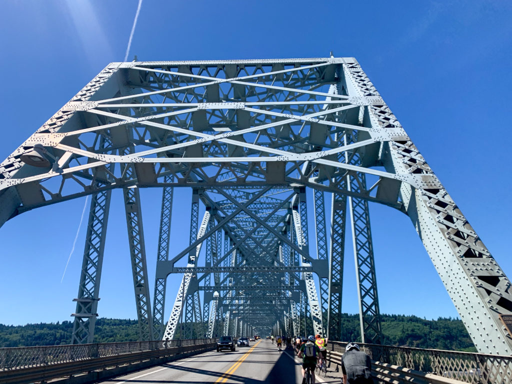 オレゴン州とワシントン州を隔てる川に掛かった、大きな鉄橋を渡る。ポートランドへの入り口にも、別な大きな鉄橋が架かっていた。鉄橋のような、重力に逆らってそびえ立つ人造の巨大な構造物が大好きである。登り切って、対岸に向かってスピードを出して下っていく気分も最高だ。そういった、気分が高揚する一瞬もあるが、交通量の多い大通りの路肩を何10kmとずっと進んでいくところもある。昼下がりの日差しは強烈で、アスファルトは光を反射する鏡のような気がしてくる。広い道路には日陰もほとんどない。体に水を掛けて気化熱で冷やしながら進む。
